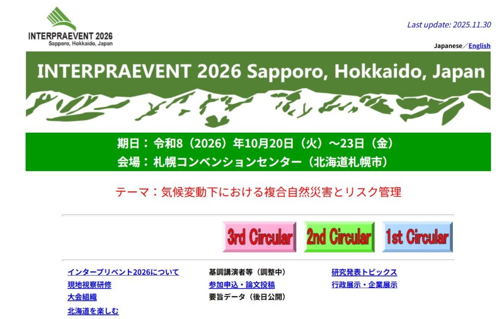 今後も、気候変動や地震、火山噴火に伴う複合自然災害に対するリスクと隣り合わせで暮らす人びとは、これらに適応し共存していく必要があり、これまで培われた技術や経験、教訓を共有するとともに、今後の防災・減災に関する研究及び考察を深め、適切な対応策を積極的に世界へ発信していくことが極めて重要である。このため、「気候変動下における複合自然災害とリスク管理」をテーマに、世界の技術者、研究者、行政関係者等が北海道に集う「環太平洋インタープリベント2026」を開催する。