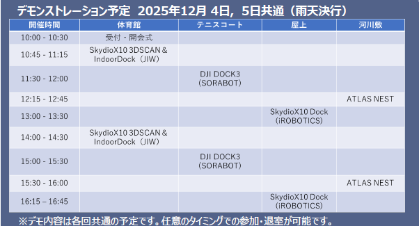 SORABOTのDJI DOCK3を活用したデモンストレーションは両日とも2回ずつ行います。