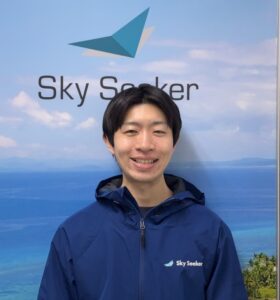 静岡県出身。スカイシーカー営業部配属。入社以来、一貫してドローンによる鳥獣害対策の最前線に従事。