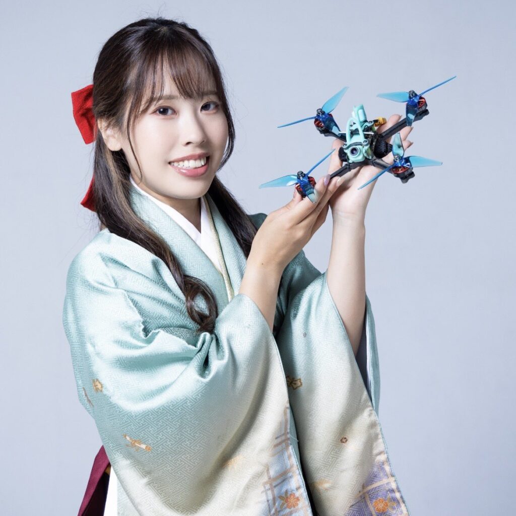 千葉県出身。FPVドローンレーサーとして世界大会に出場し、女性選手として注目を集める。